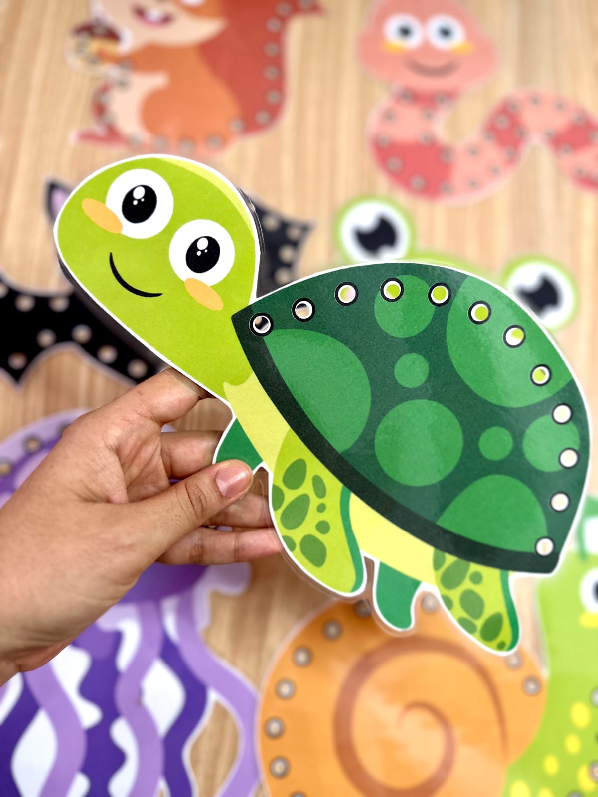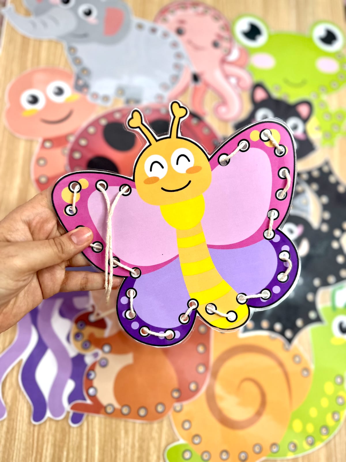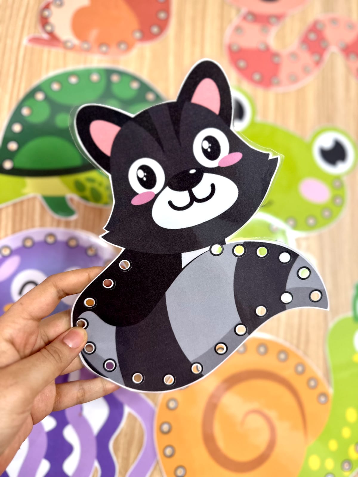 O Alinhavos dos Animais é um recurso educativo perfeito para potencializar o desenvolvimento motor das crianças de forma lúdica e divertida! Com 12 ilustrações de animais diferentes, este material estimula a coordenação motora fina através da movimentação que a criança precisa fazer ao passar o barbante pelos furos da figura, explorando movimentos de precisão.