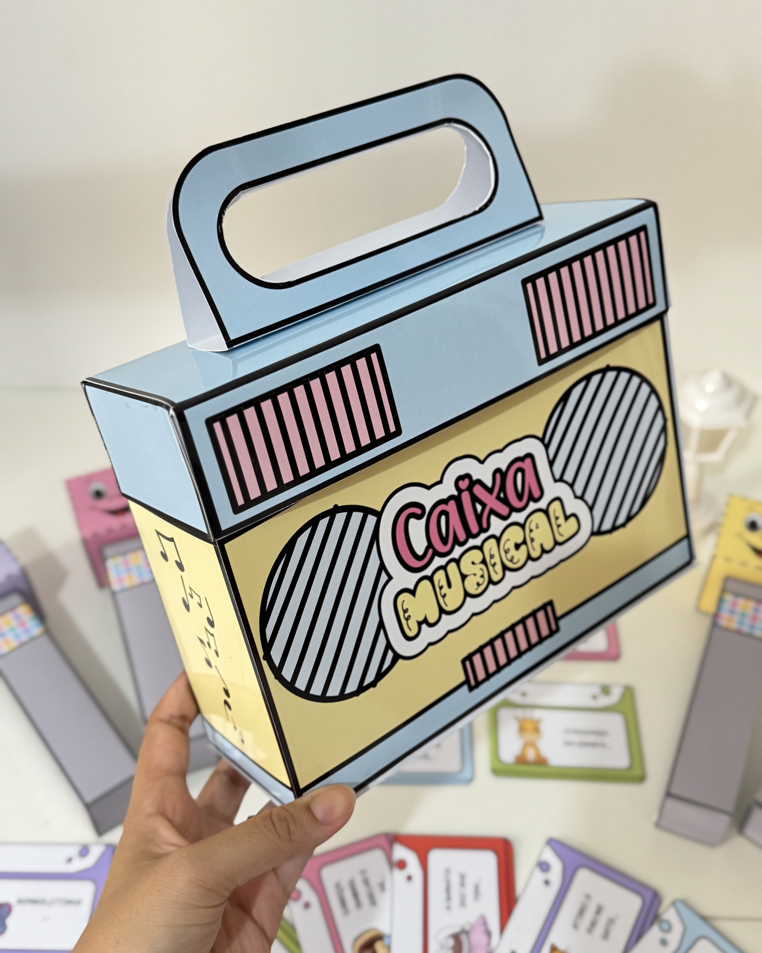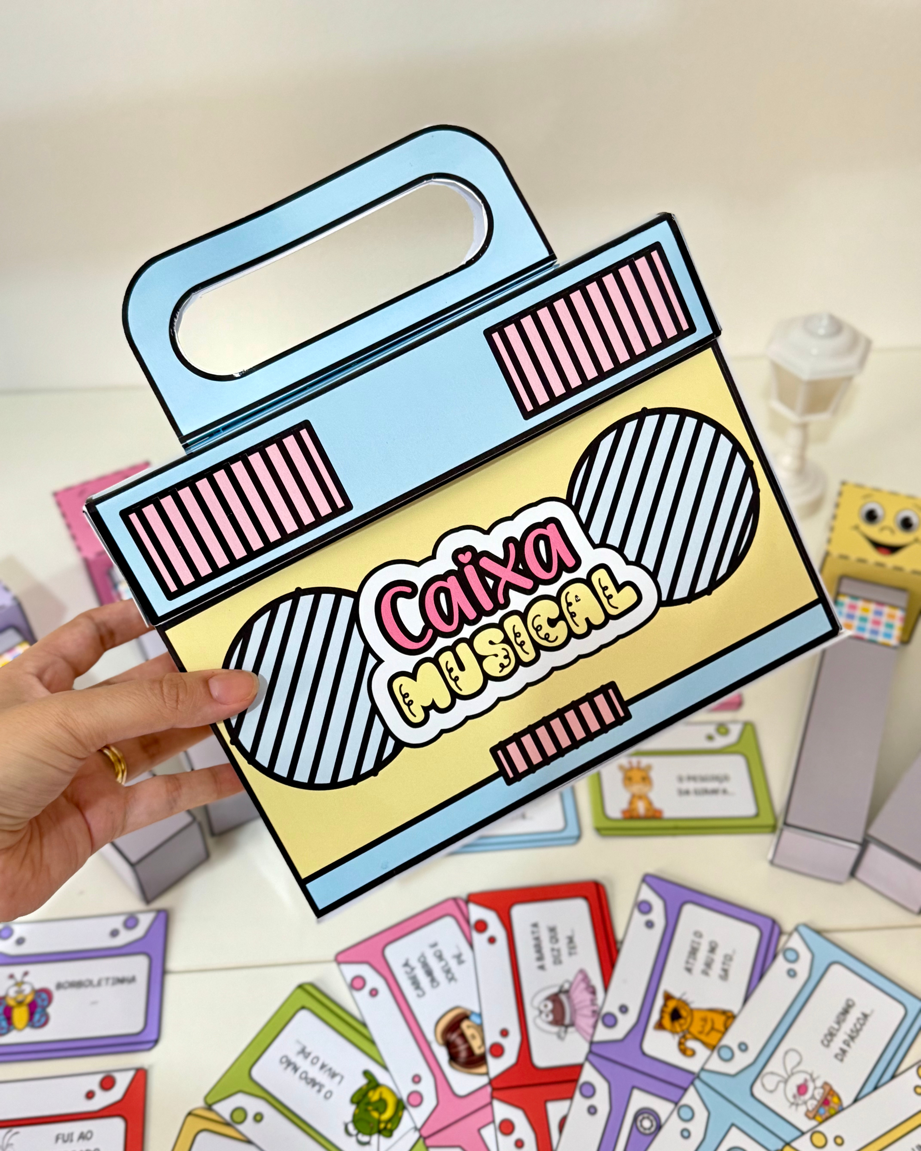 Transforme os momentos com a sua turminha usando nossa Caixa Musical! Este recurso especial traz mais de 20 músicas de roda e outras canções clássicas , perfeitas para estimular a musicalidade, o movimento e a interação das crianças de forma lúdica e envolvente.