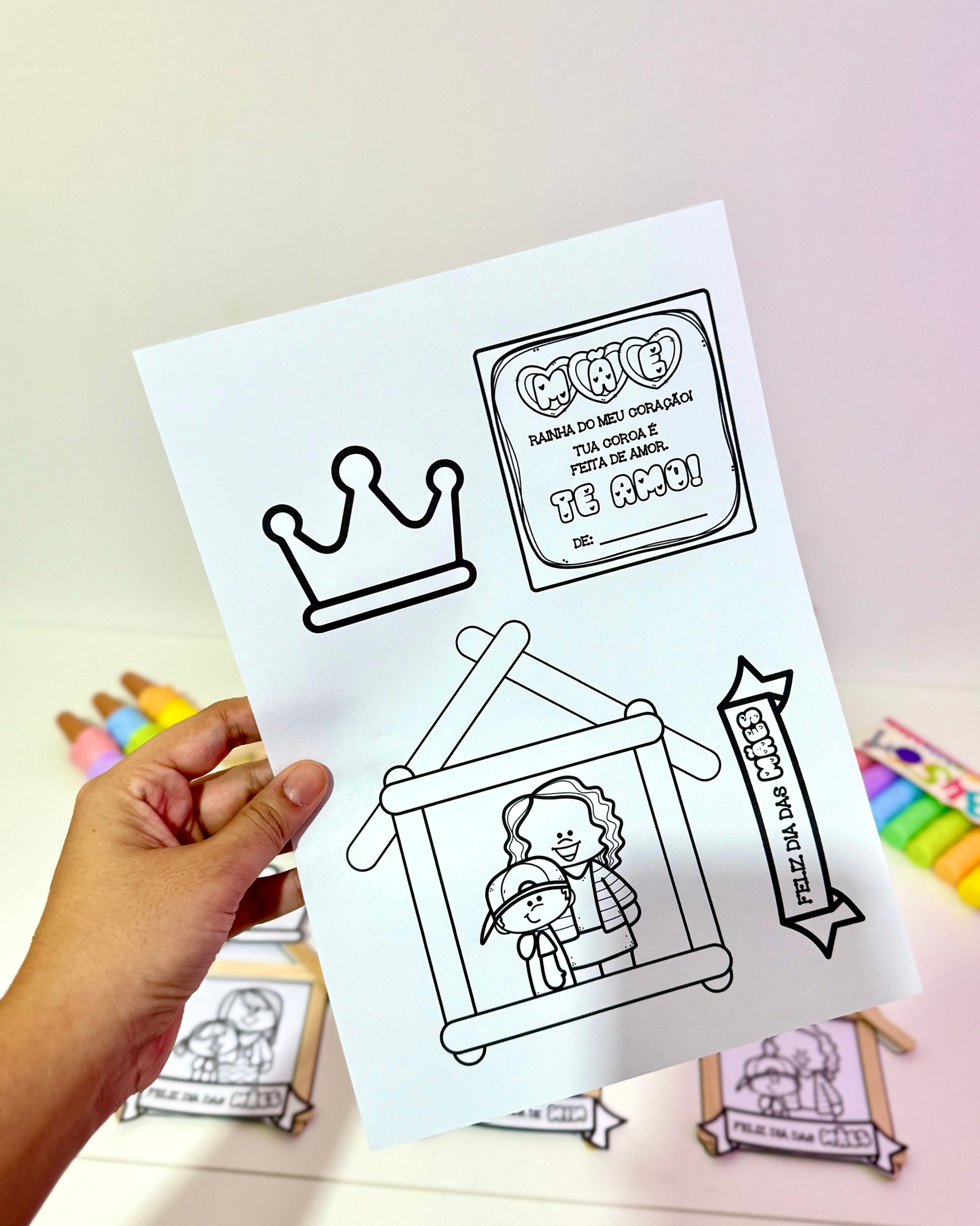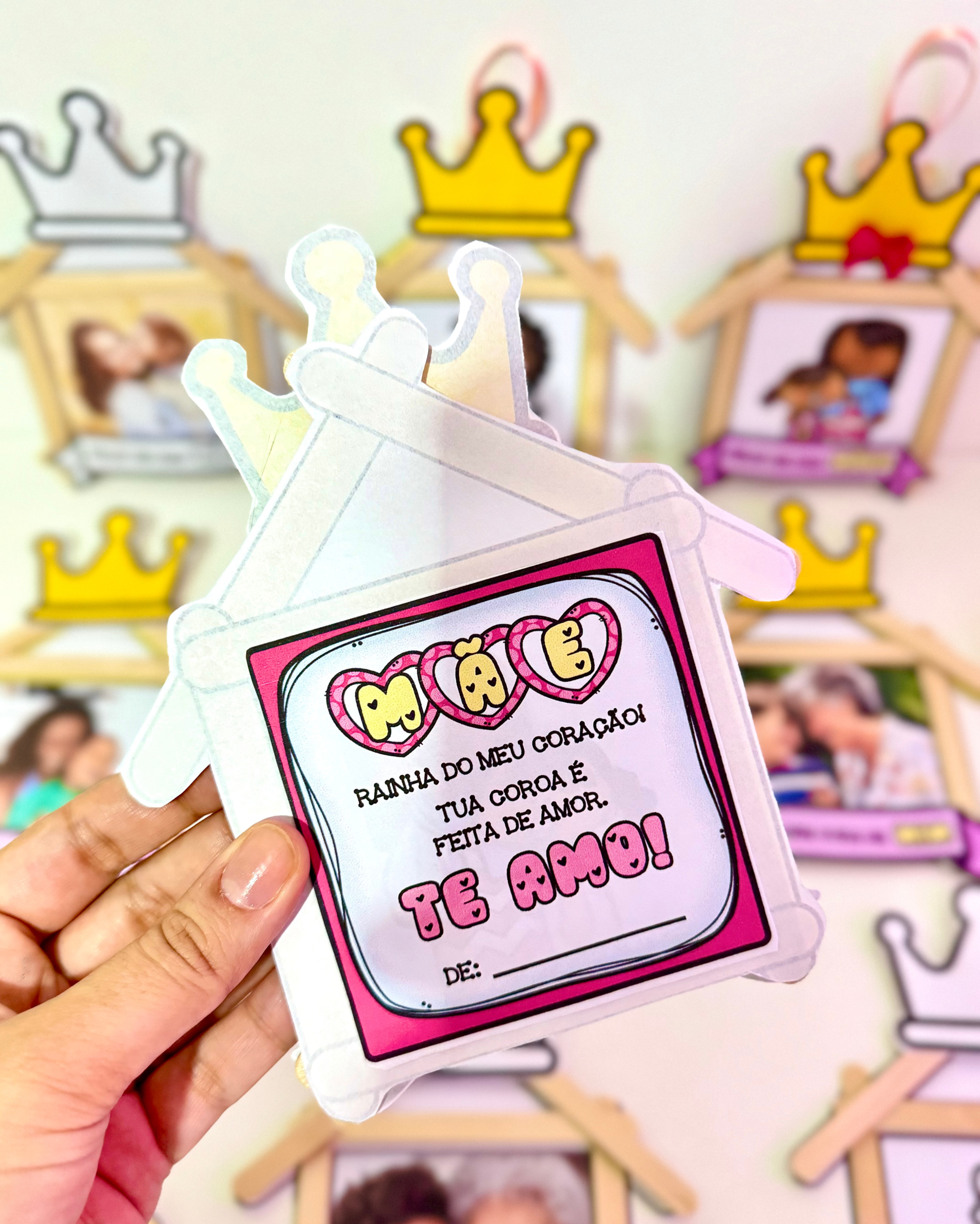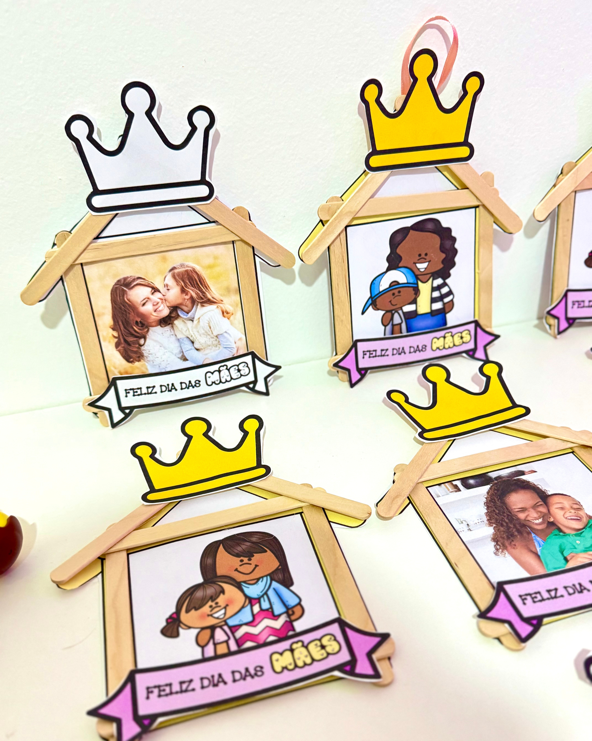 Ideia com foto para trabalhar com muito carinho o tema Dia das Mães (ou “Dia da família” ou o “Dia de quem cuida de mim”) com as turmas da Educação Infantil. Com as mãozinhas das crianças participando, sua criatividade e protagonismo permitiremos que montem uma lembrança especial com palitinhos de picolé, utilizando elementos visuais e simbólicos que reforçam o vínculo com a figura materna ou com quem cuida delas no dia a dia.