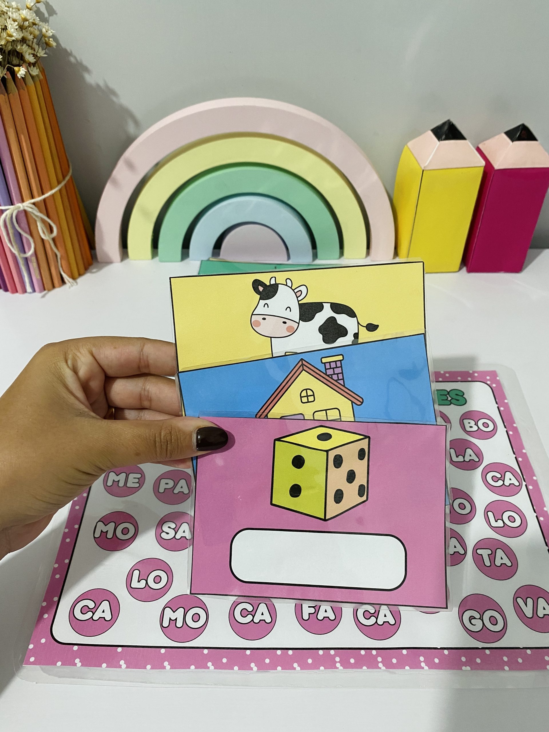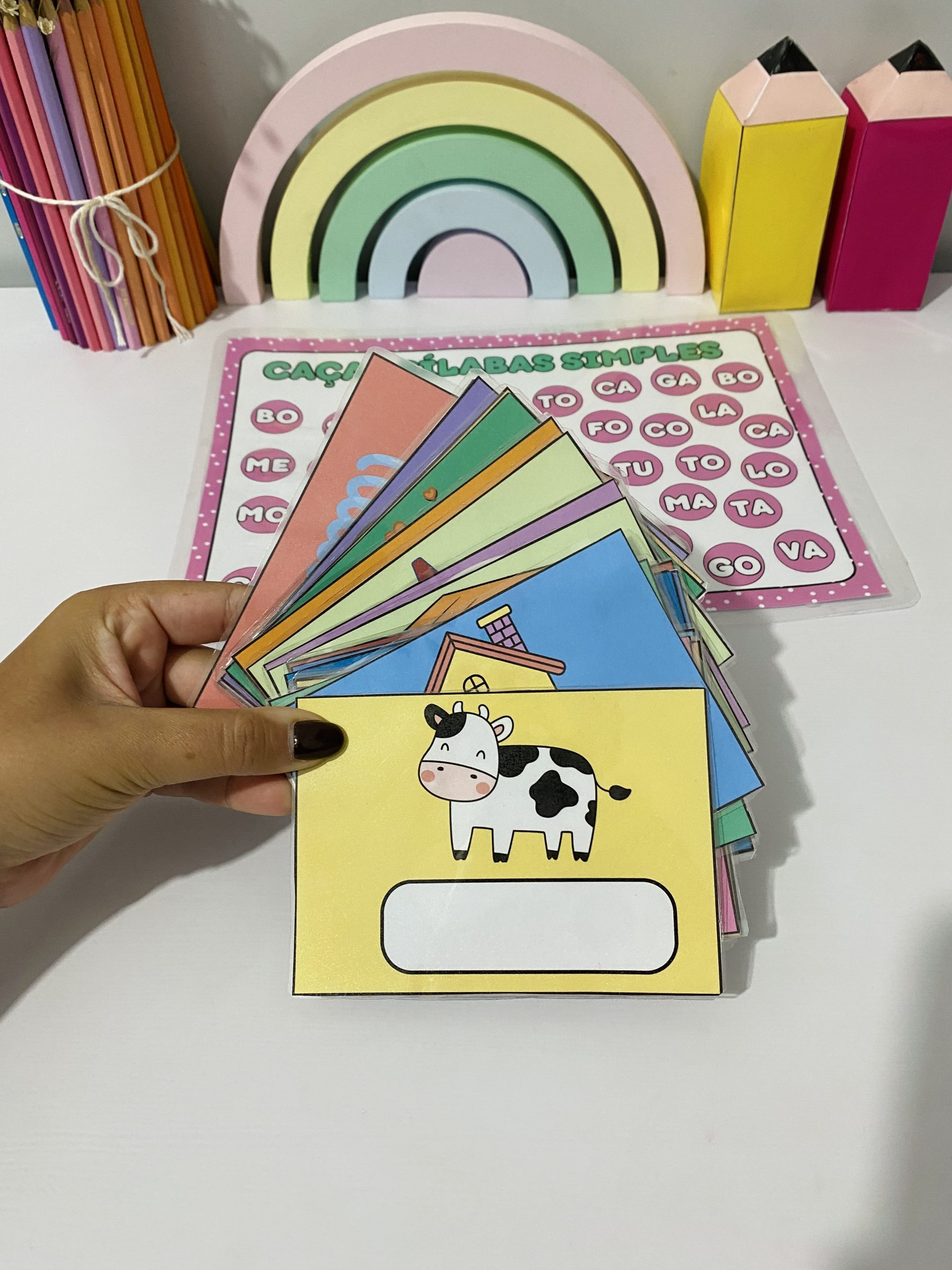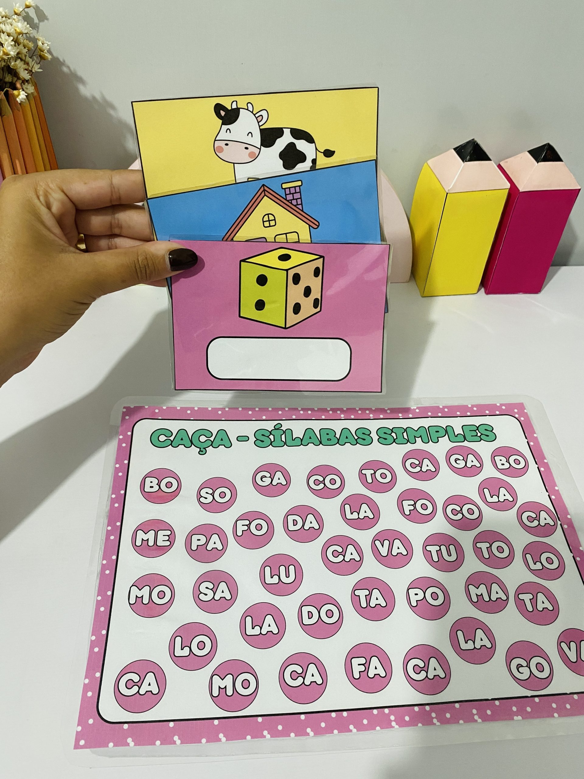 Nessa atividade, as sílabas foram repetidas intencionalmente para garantir que a criança encontre todas com facilidade, sem precisar repetir marcações. Isso reforça a memorização, a fluência da leitura e o reconhecimento visual das sílabas.