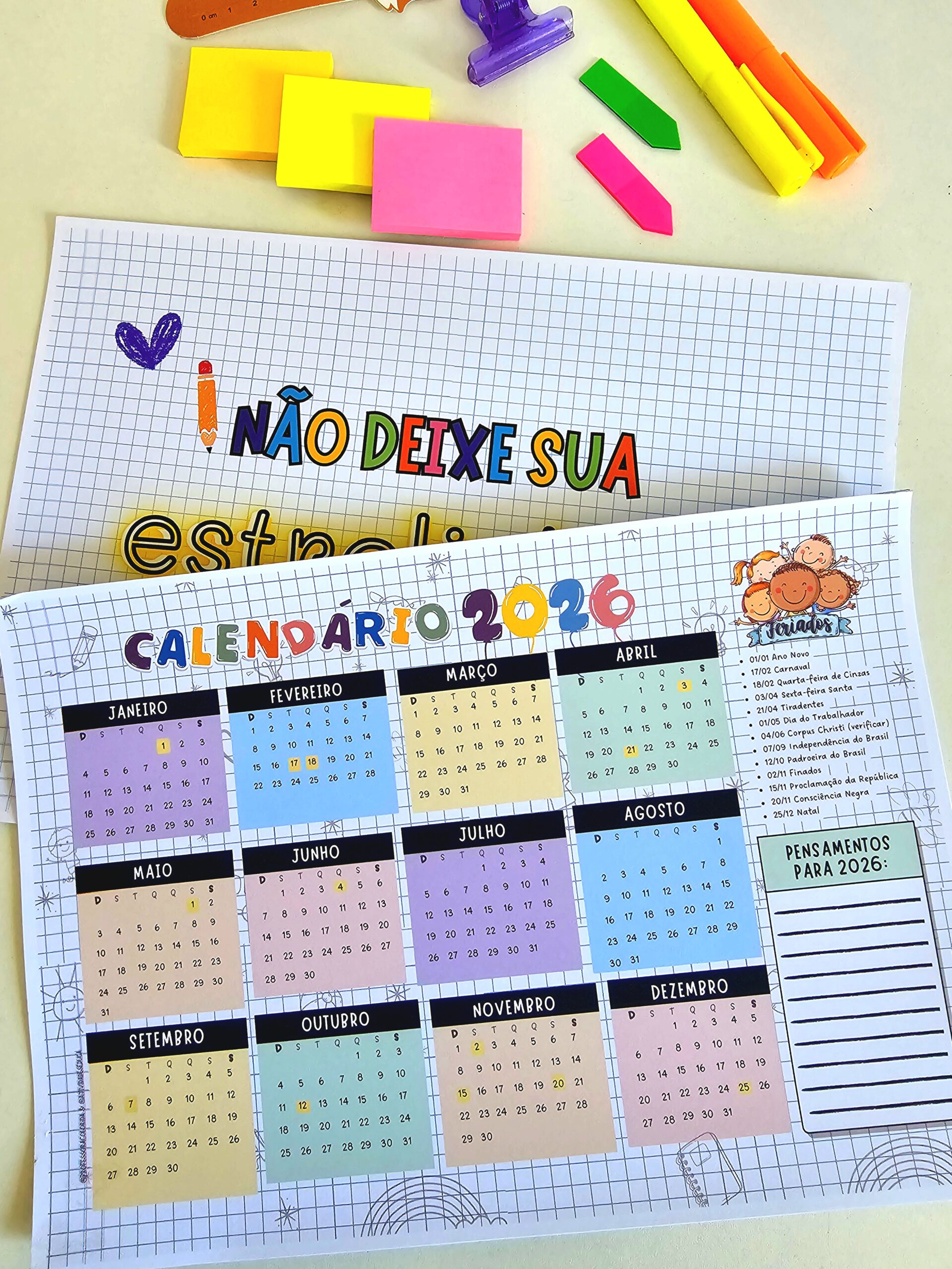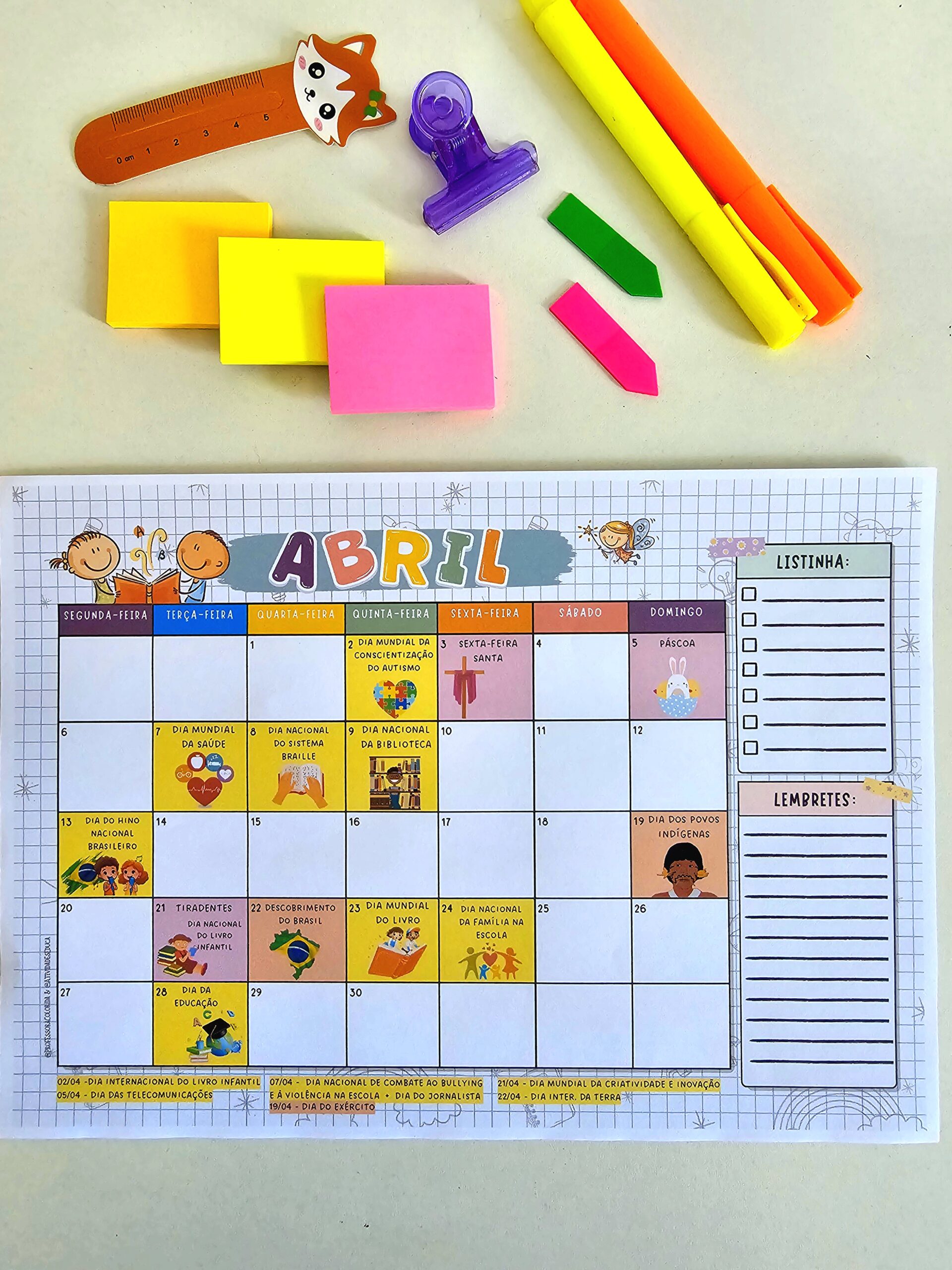 Nosso calendário da professora com datas comemorativas voltou e foi atualizado com sucesso para acompanhar muitas professoras em 2026! Ao realizar sua compra você terá acesso: