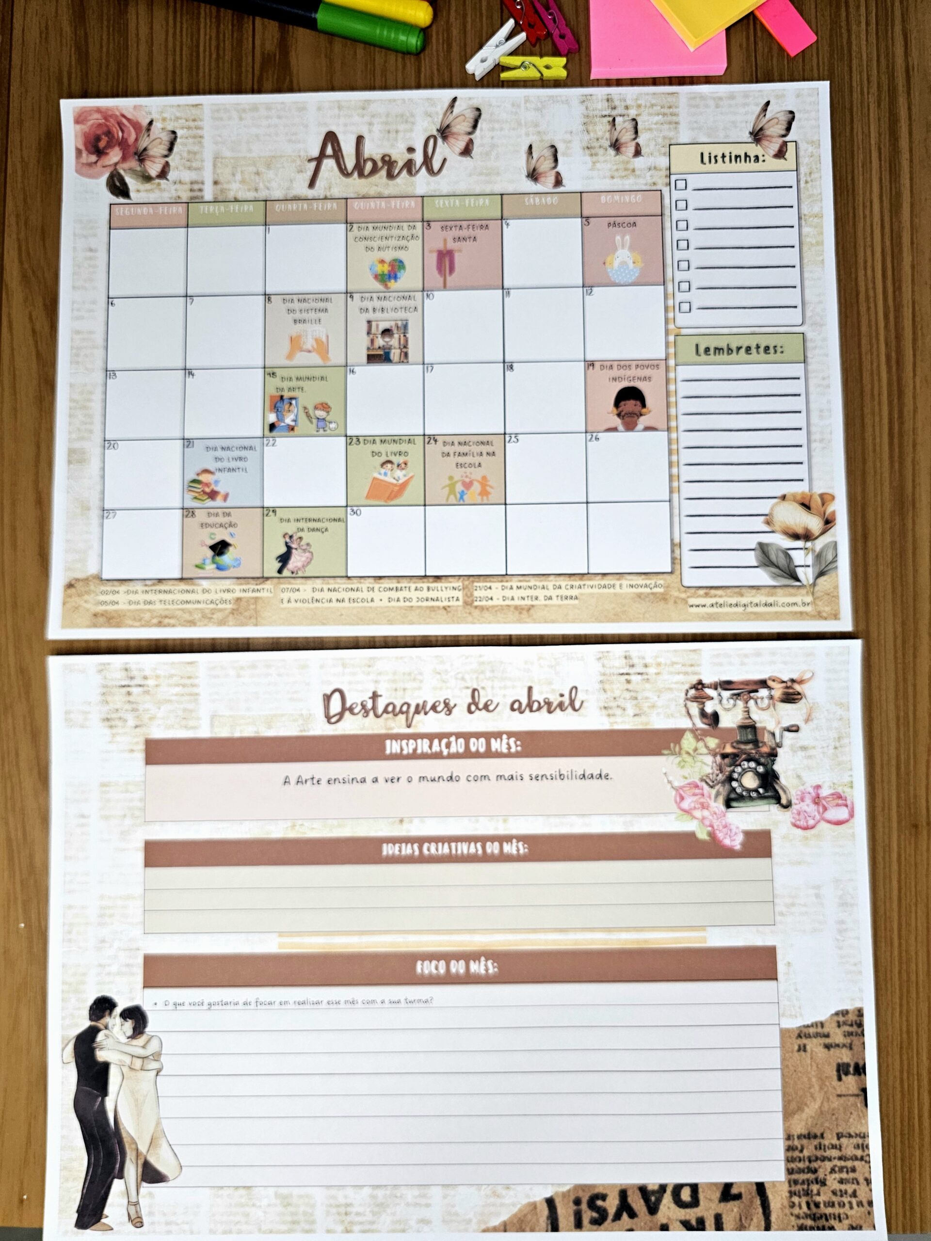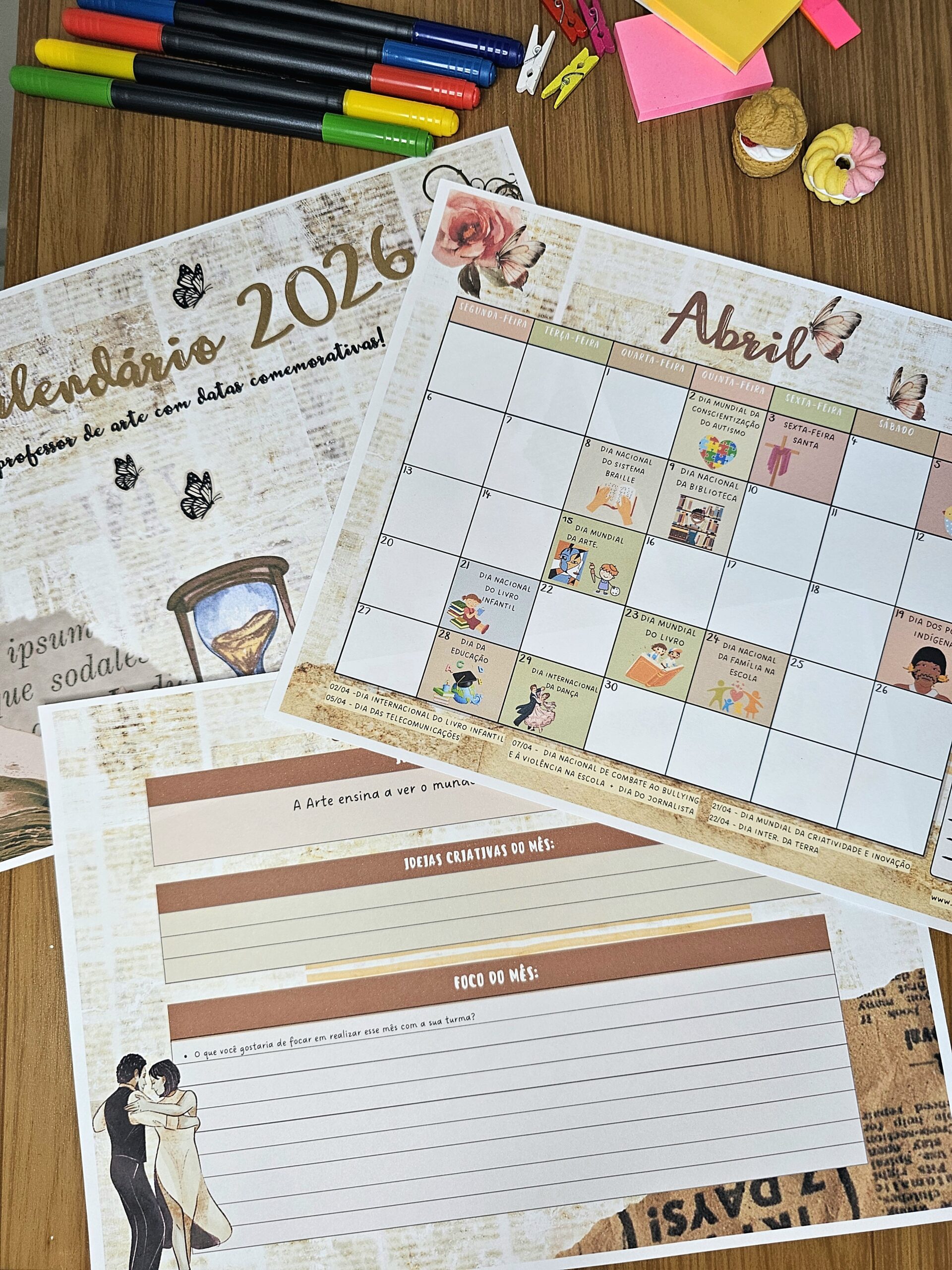 Este calendário serve como ferramenta de planejamento pedagógico, estimulando novas ideias e ampliando as conexões entre datas importantes e atividades em sala de aula.
