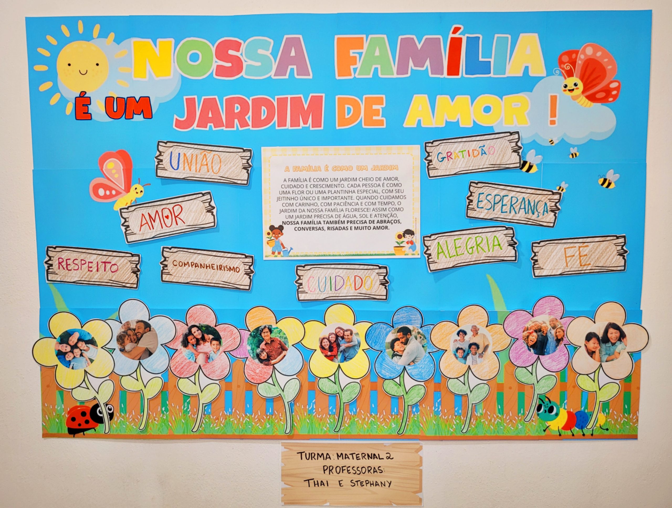Este recurso propõe a construção de um lindo mural coletivo com o tema “A Família é como um Jardim”, incentivando a participação das crianças e suas famílias em momentos de amor, diálogo e colaboração.