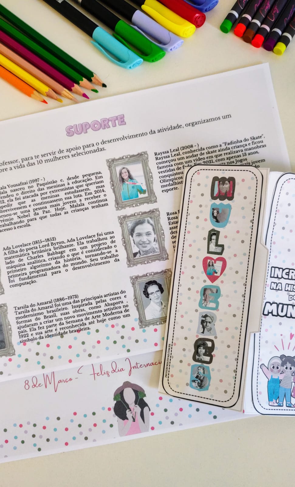 Nosso Lapbook para o Dia Internacional da Mulher foi desenvolvido para destacar figuras femininas marcantes e suas contribuições em diversas áreas da sociedade. Além de incentivar a curiosidade e a criatividade, essa atividade promove a valorização da diversidade e o reconhecimento do papel das mulheres na construção da nossa história. Uma proposta lúdica para ampliar o conhecimento cultural e inspirar os alunos!