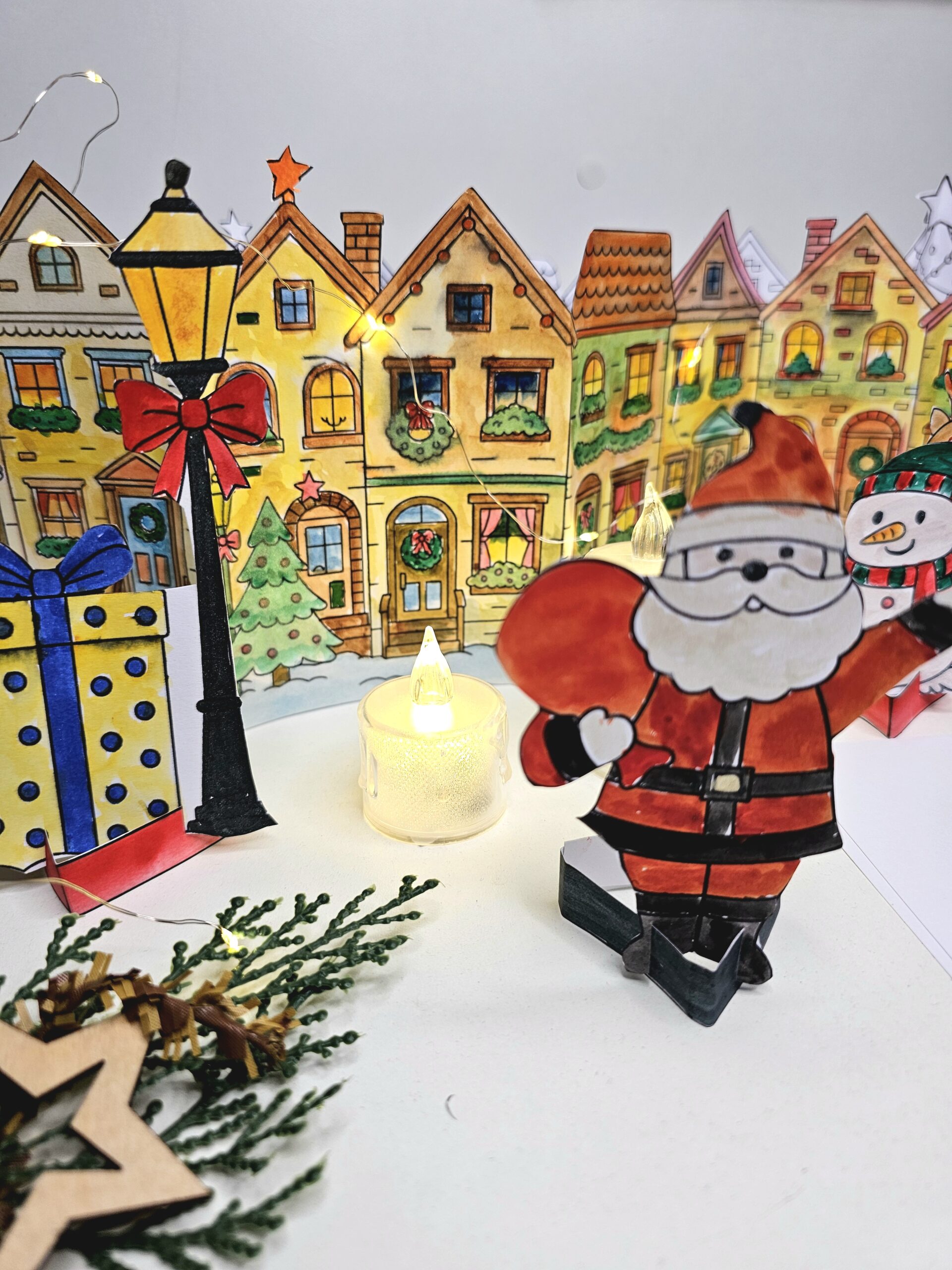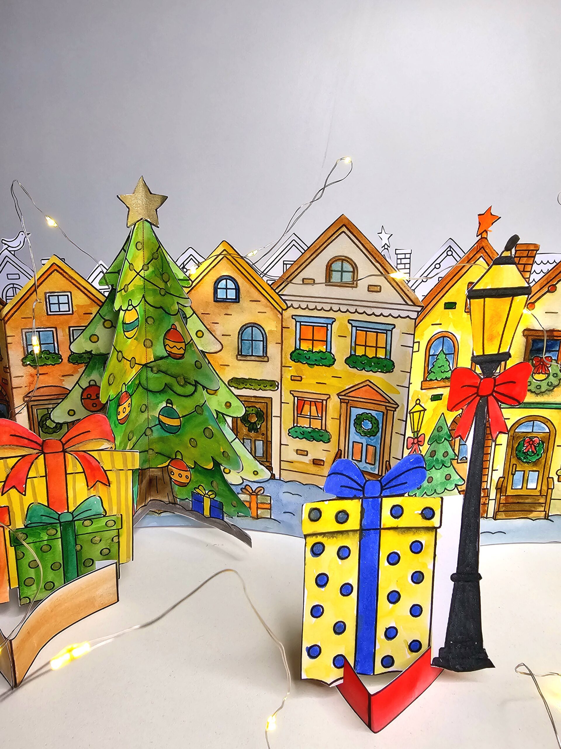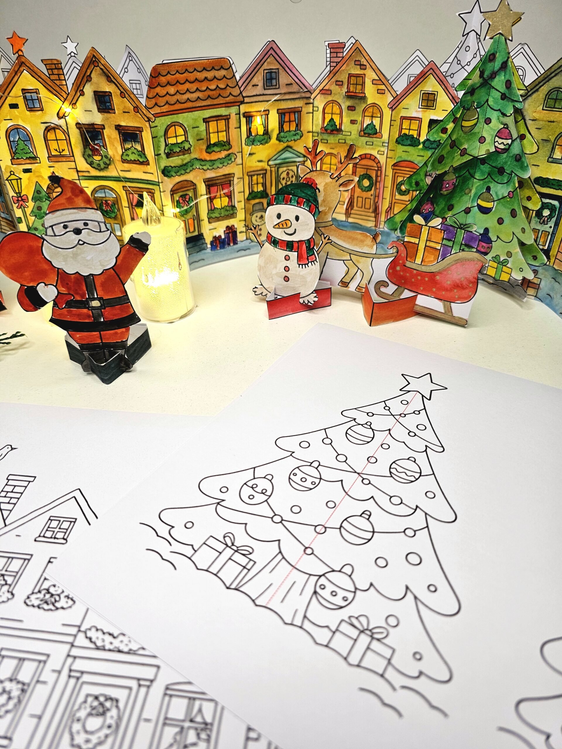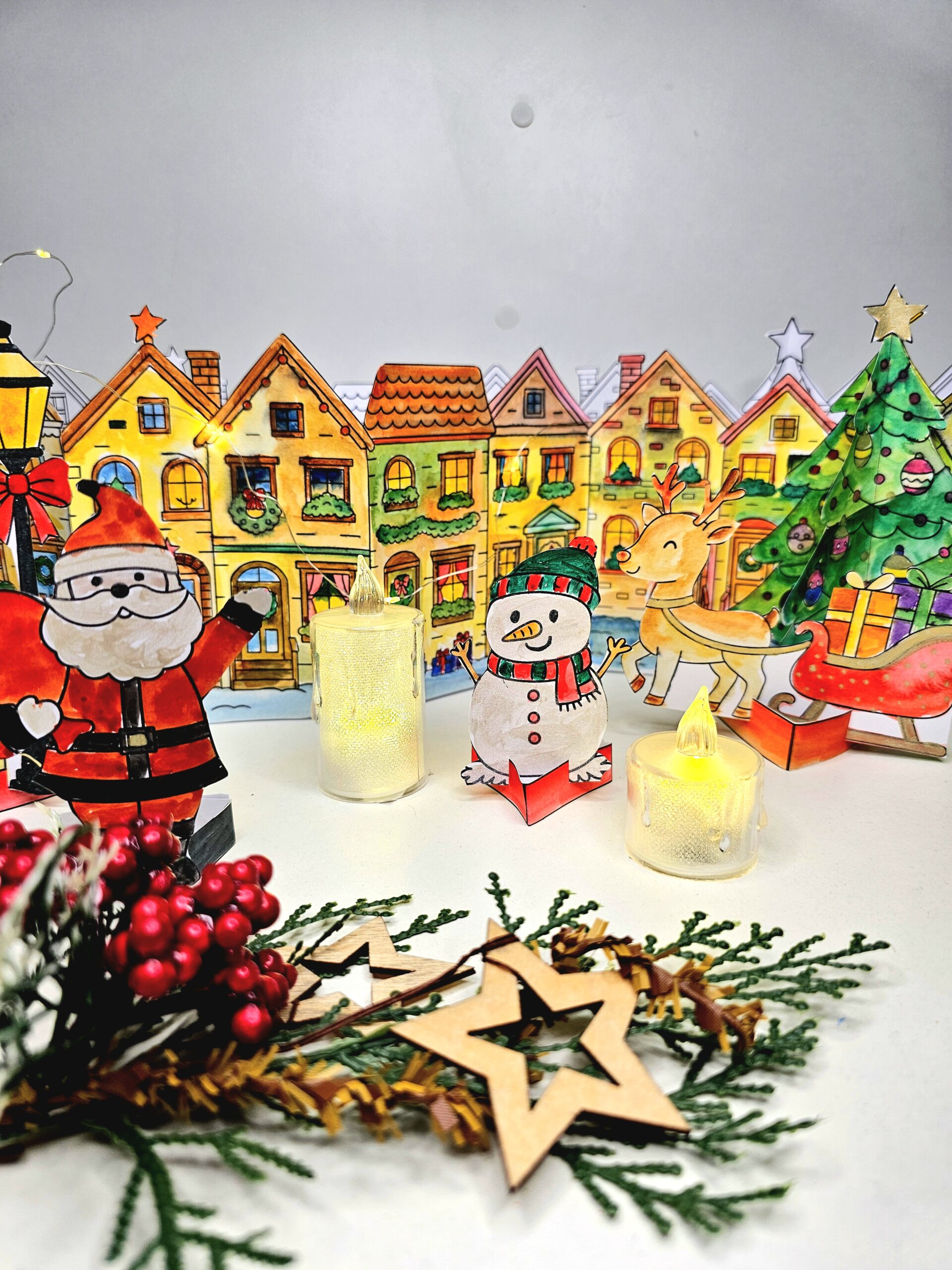 Encante sua turma (ou sua casa!) com esse cenário de Casinhas de Natal para montar, pintar e cola