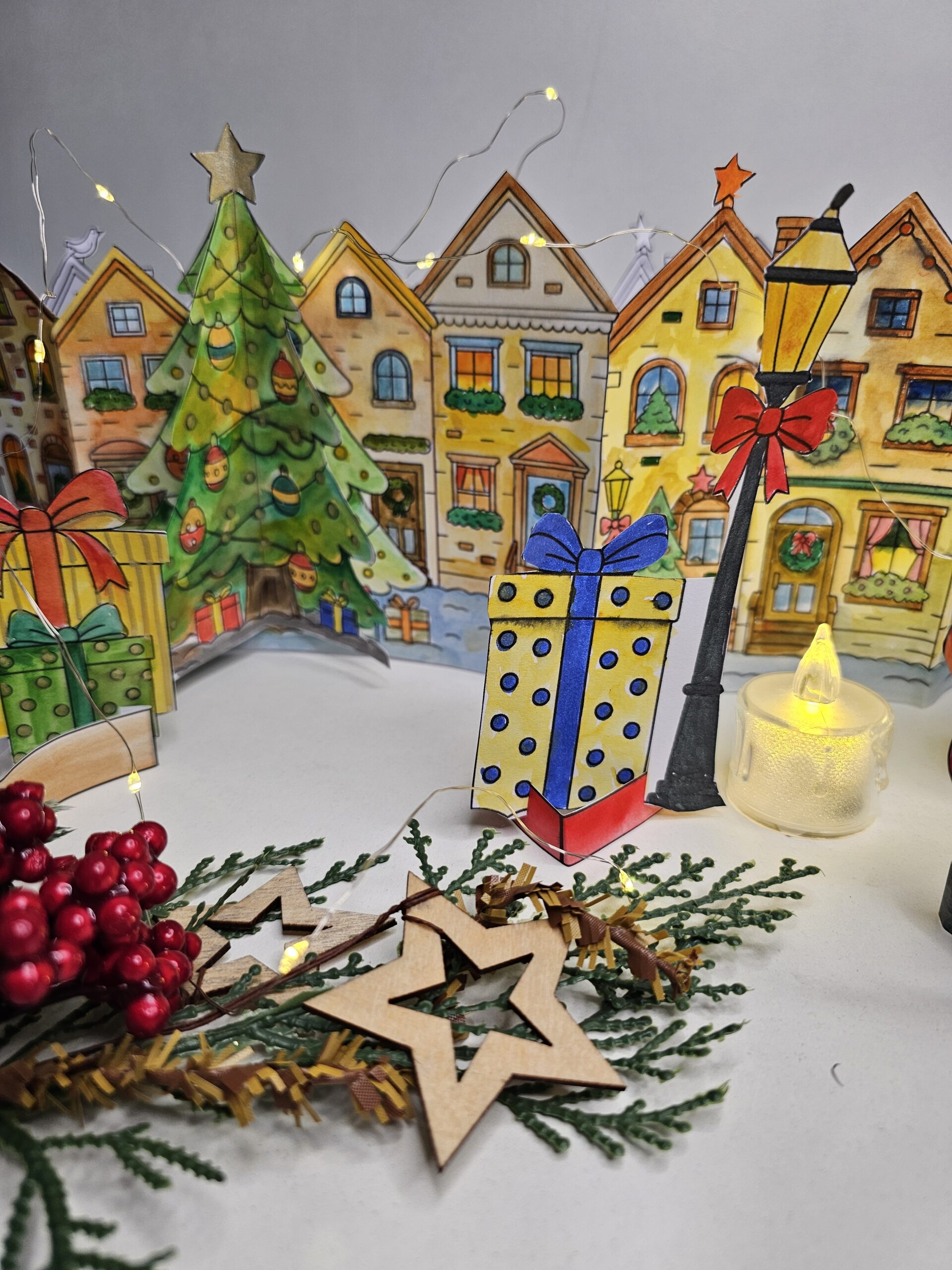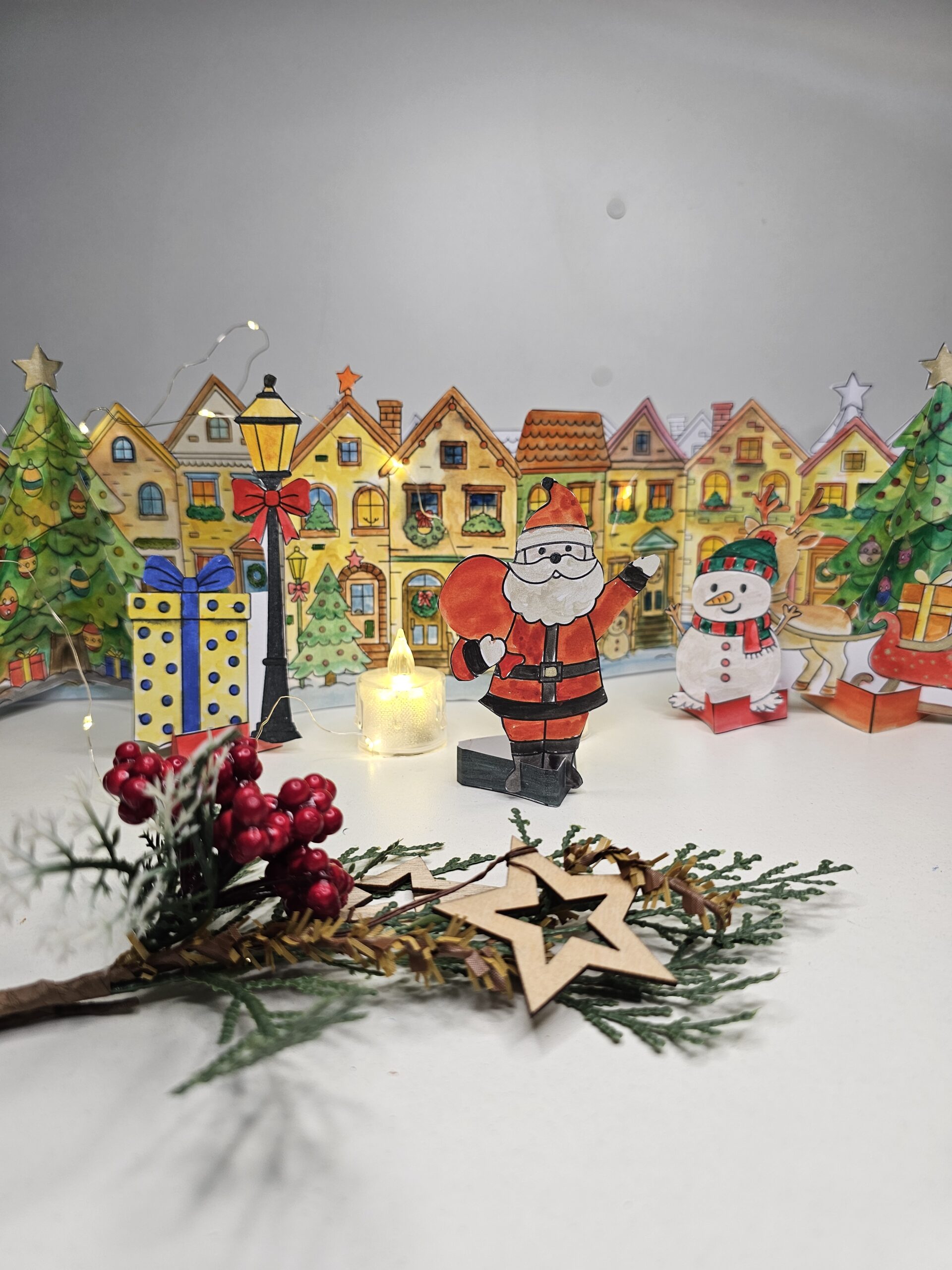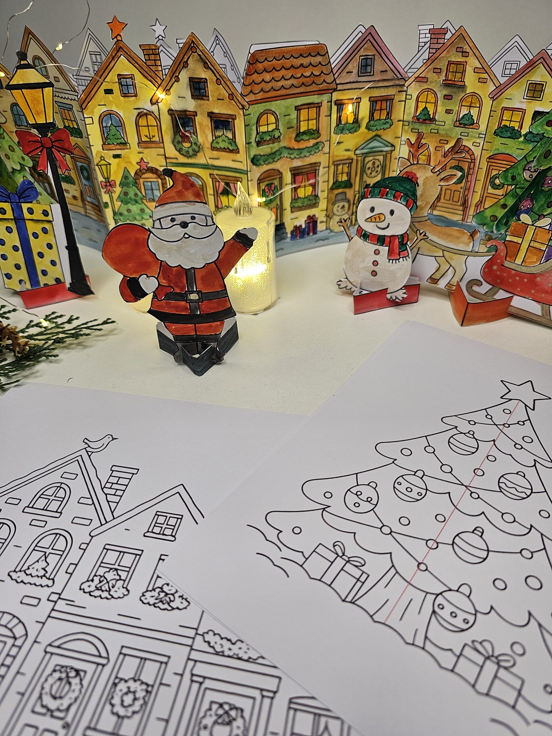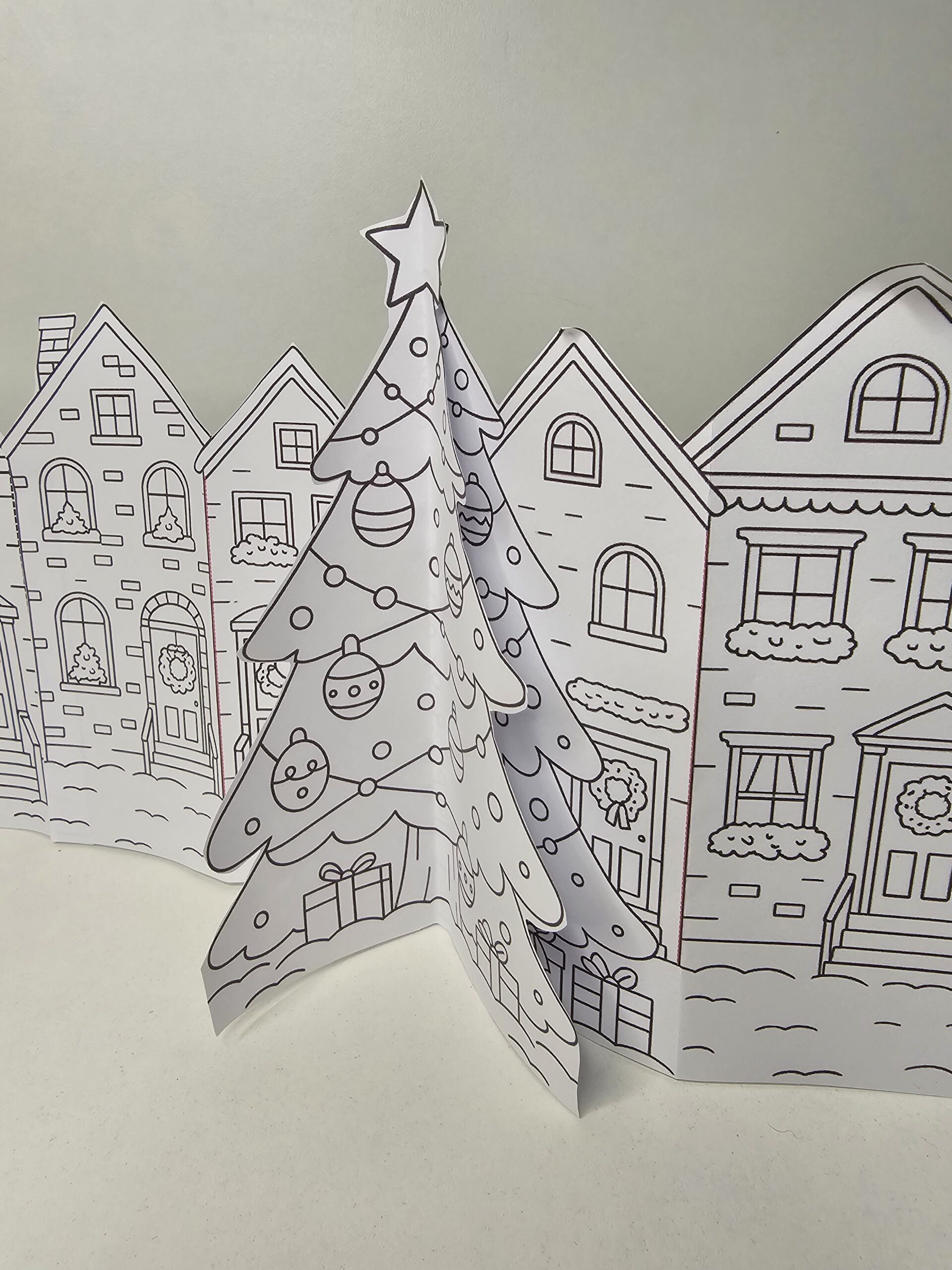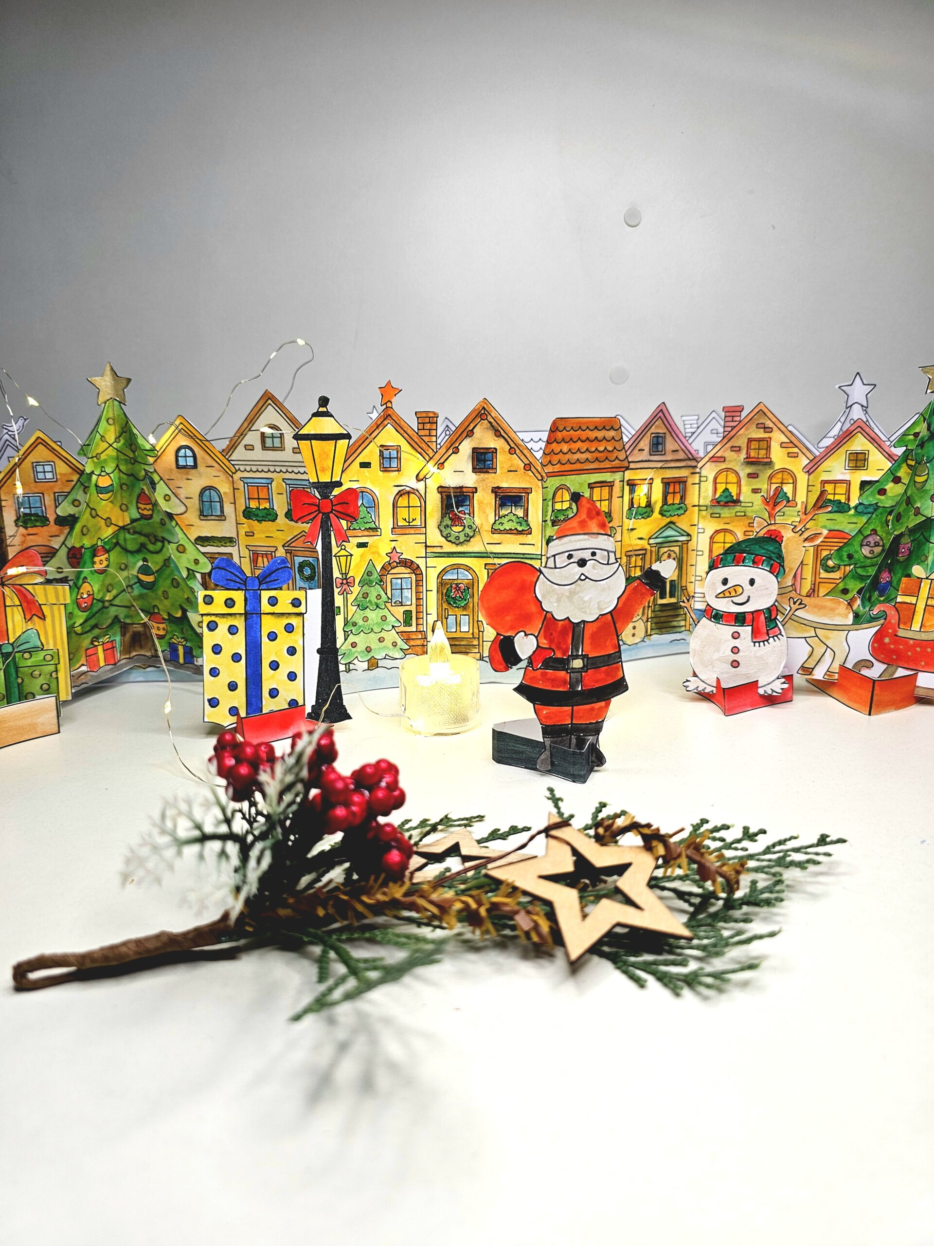 Encante sua turma (ou sua casa!) com esse cenário de Casinhas de Natal para montar, pintar e cola
