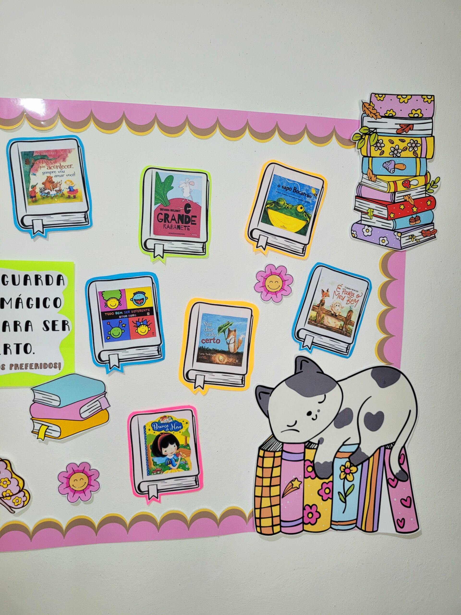 Com diferentes possibilidades de uso, o mural permite que cada turma construa um painel único, valorizando as experiências, interesses e repertório das crianças.