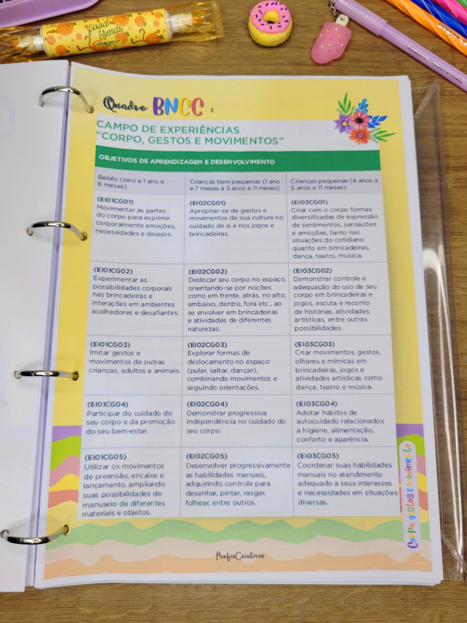 Um dos grandes diferenciais deste planner é a área dedicada à BNCC, com: