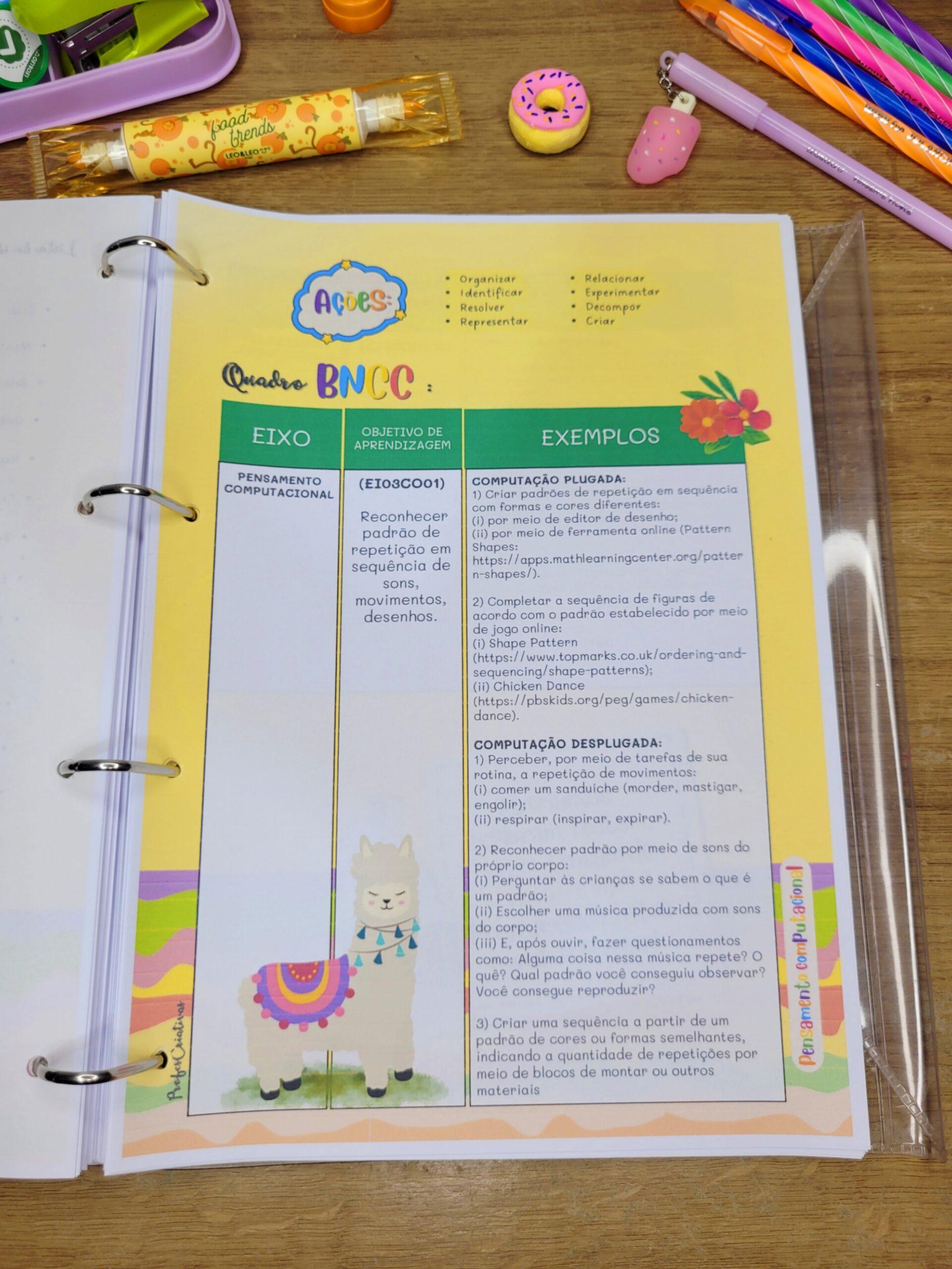 O Planner 2026 Lhama EI é um arquivo digital completo, pensado para facilitar o seu planejamento ao longo do ano, trazendo páginas funcionais, referências da BNCC organizadas de forma clara, calendários, espaços de registro e muito mais — tudo com uma estética lúdica, colorida e inspiradora.
