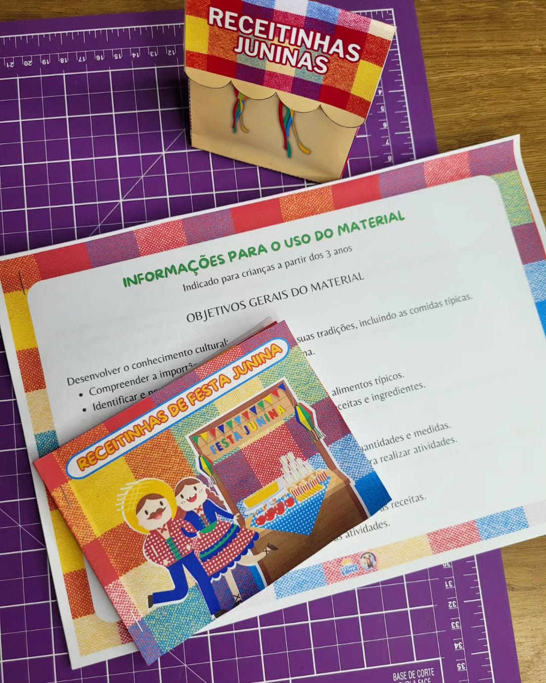 Indicado para crianças a partir dos 3 anos, o material estimula a linguagem, a coordenação motora fina, o raciocínio lógico e o senso de organização, ao mesmo tempo em que desperta o interesse pela culinária típica junina.