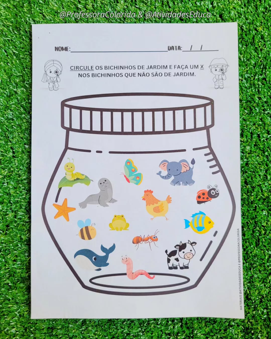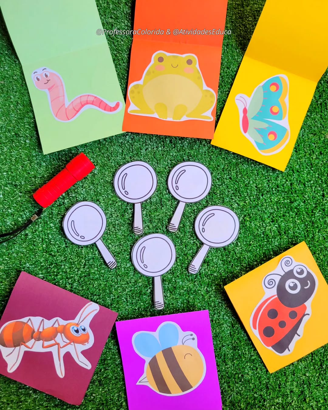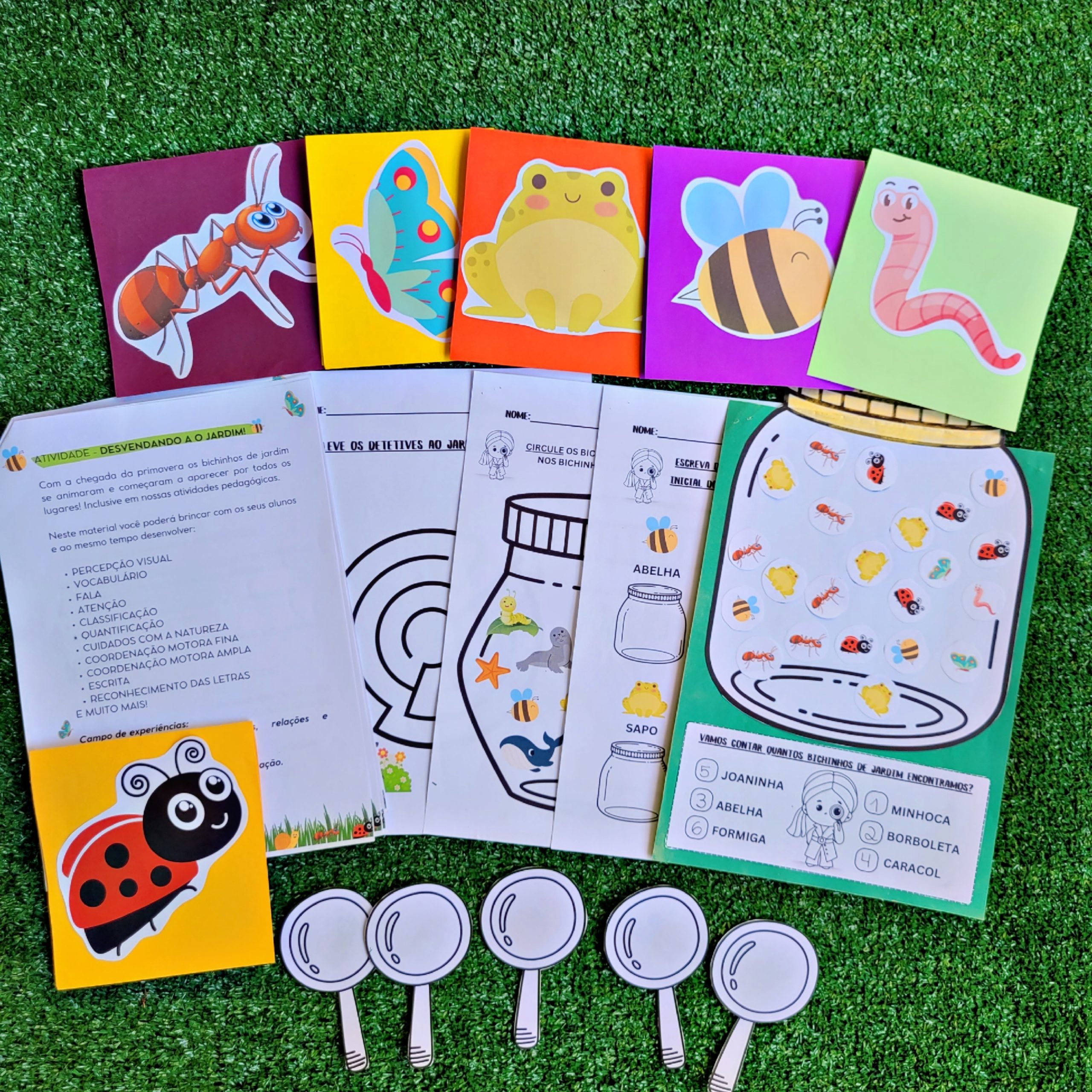 Atividade interativa com lupas e imagens surpresa de bichinhos do jardim