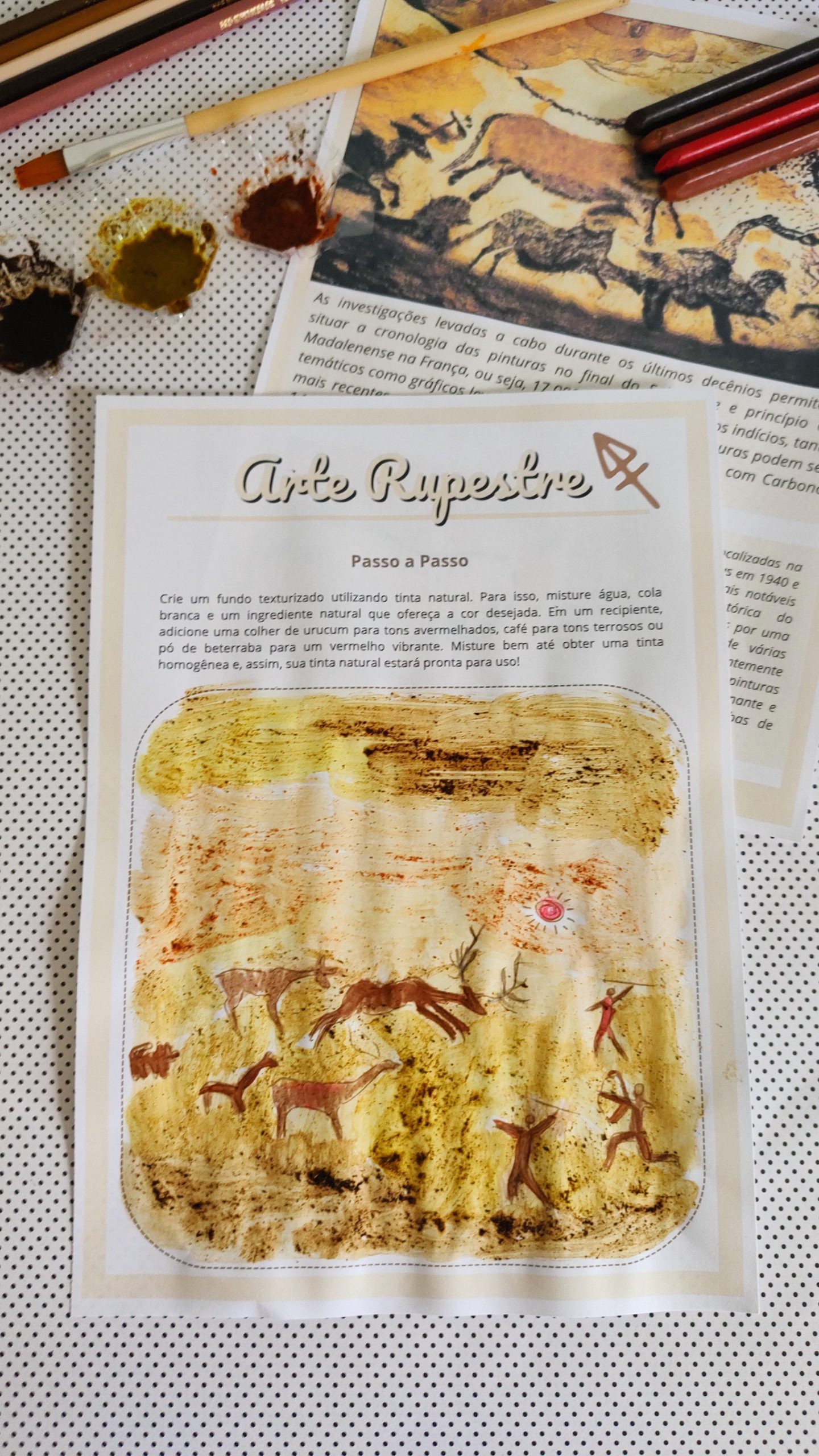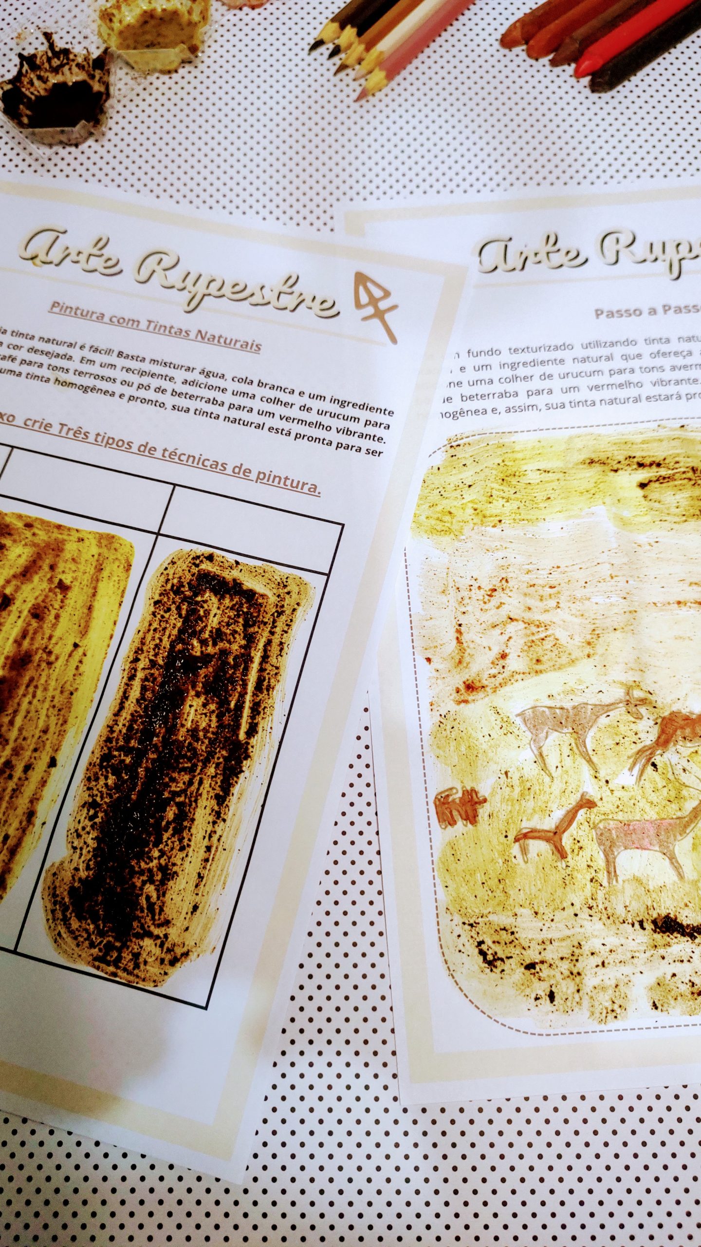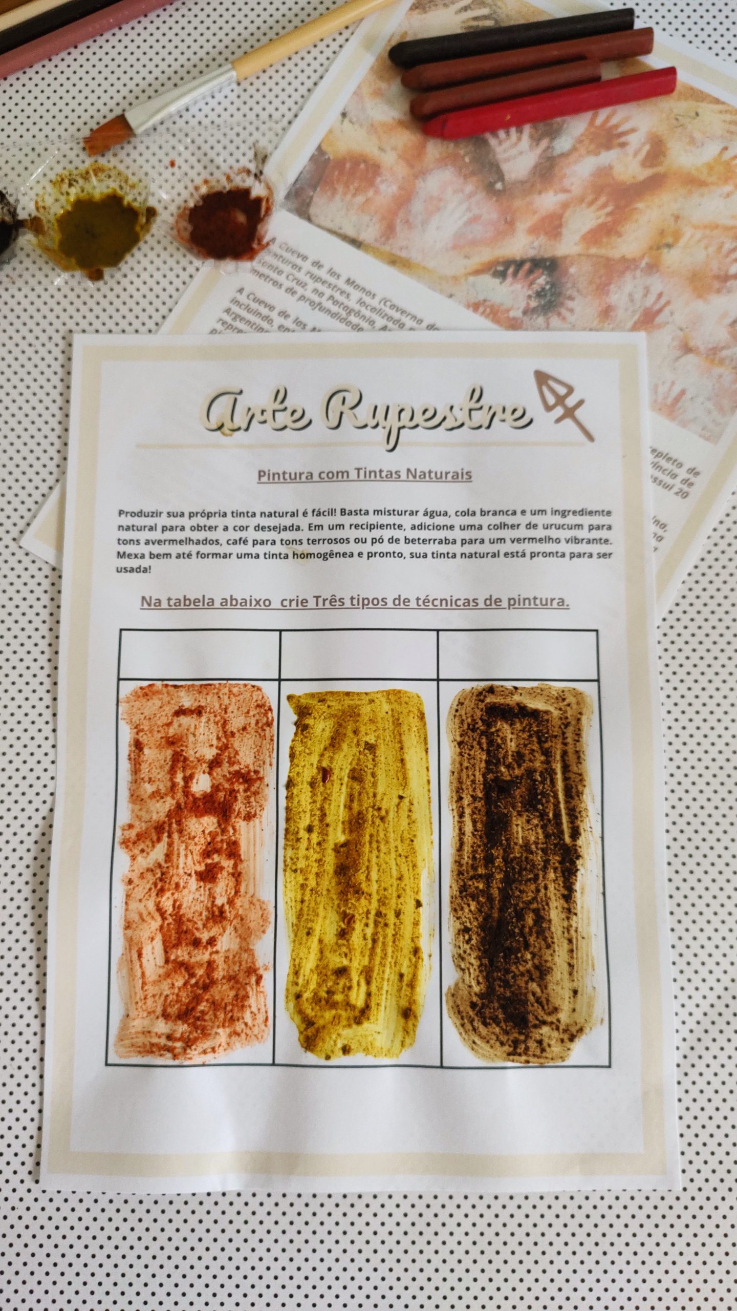 ✔️ Técnicas e materiais inspirados na arte rupestre;