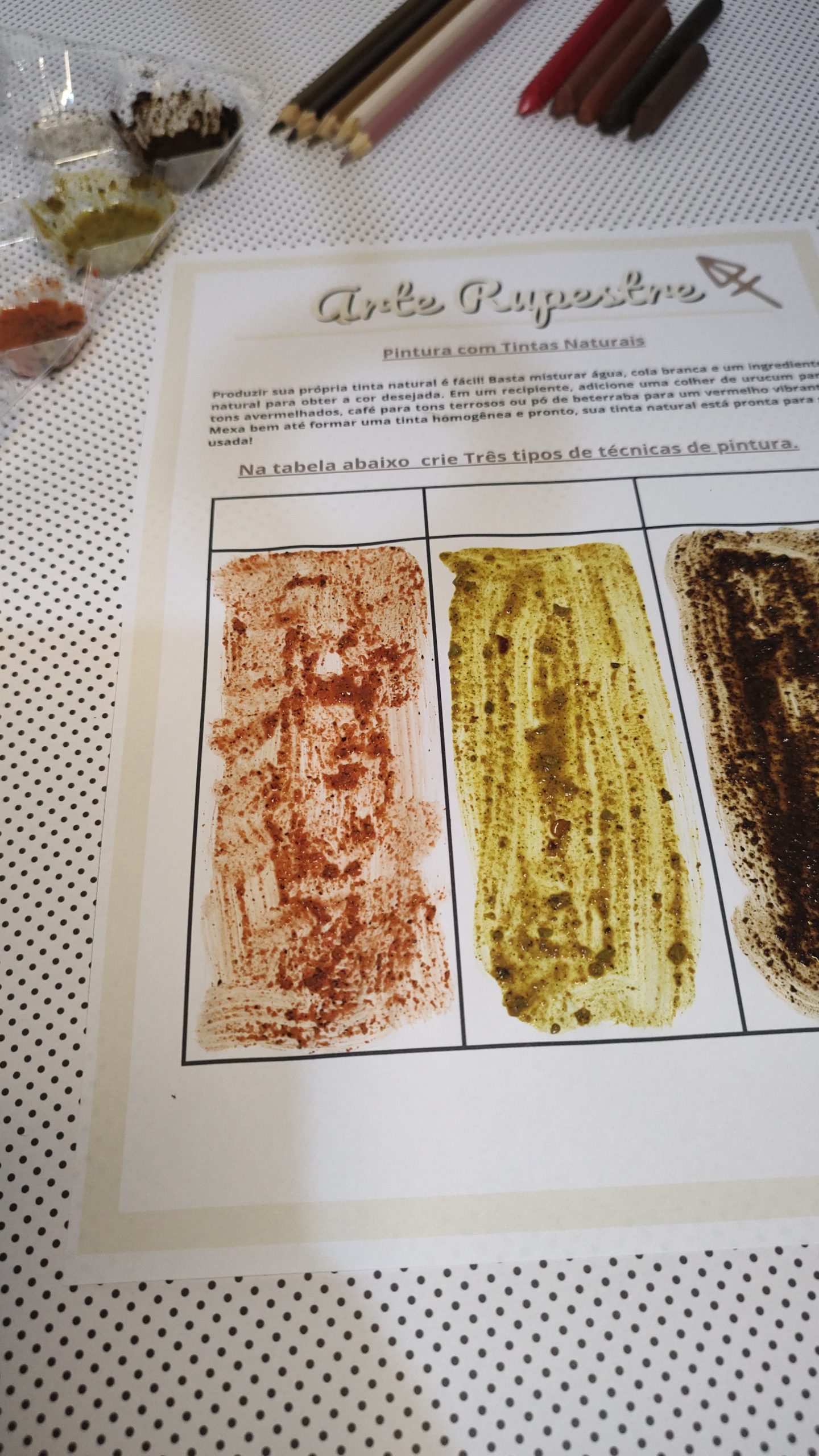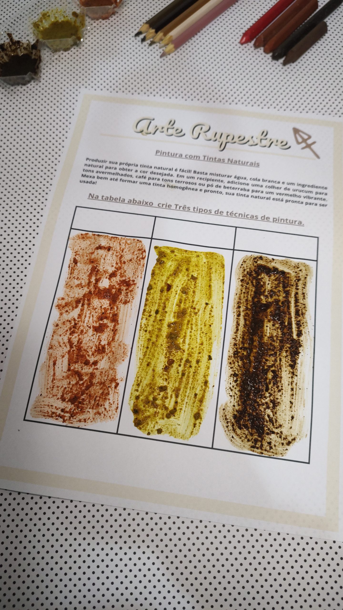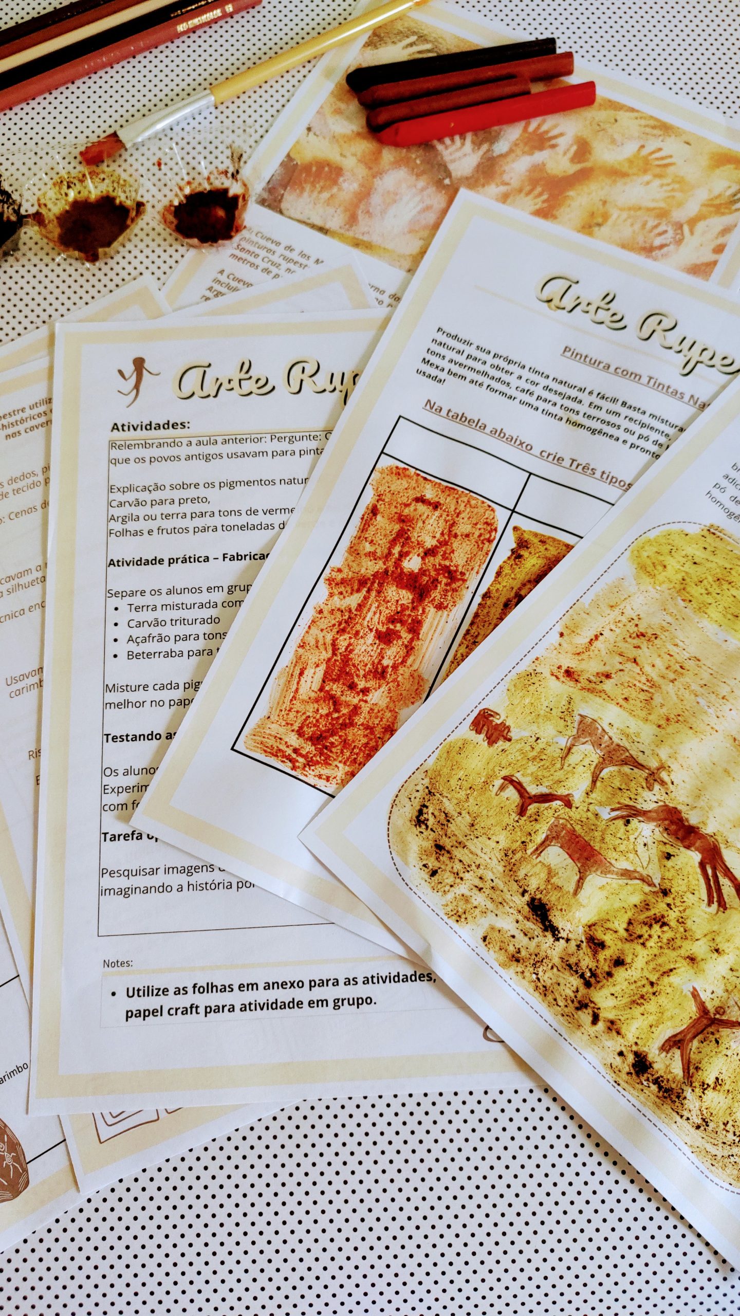 ✔️ Técnicas e materiais inspirados na arte rupestre;
